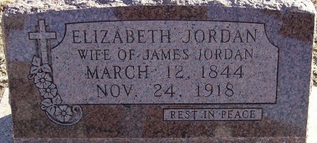 JORDAN, Elizabeth (Hart) 12 Mar 1844 24 Nov 1918 James Mar: 1865 Tombstone Photo