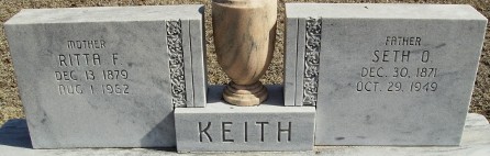 KEITH,Seth O. "Father" 30 Dec 1871 29 Oct 1949 Ritta F. KEITH