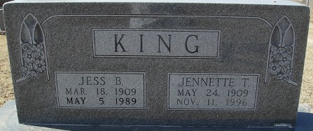KING, Jess B. 28 Mar 1909 5 May 1989 Jennette T.