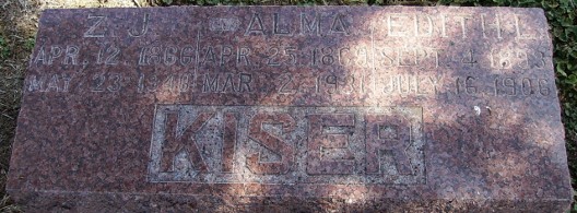 KISER,Alma 25 Apr 1869 2 Mar 1931
