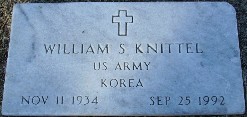 KNITTEL,William Samuel 11 Nov 1934 25 Sep 1992 Military Plaque