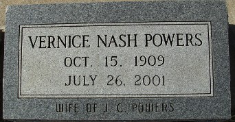 POWERS, Vernice (Nash) 15 Oct 1909 26 Jul 2001 Wife of J. G. POWERS