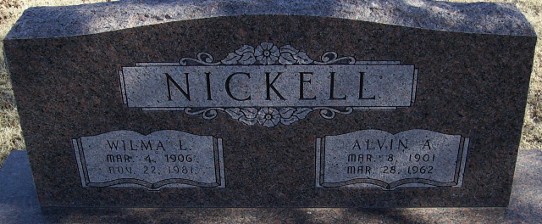 NICKELL,Alvin A. 8 Mar 1901 28 Mar 1962 Wilma L. NICKELL