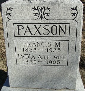 PAXSON,Francis M. 1852 1925 Lydia A. PAXSON