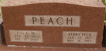 PEACH,Perry "Peck" 13 Jan 1908 16 May 1977 Lola M.