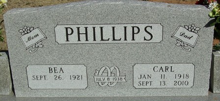 PHILLIPS, Carl Norman 11 Jan 1918 13 Sep 2010 Bea Wed 8Jul1938 Tombstone Photo -Carl