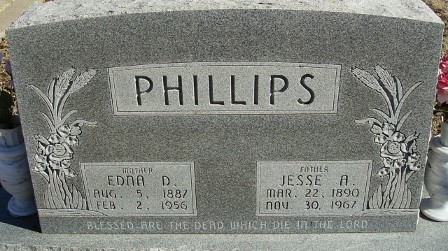 PHILLIPS,Edna D. "Mother" 5 Aug 1887 2 Feb 1956 Jesse A. PHILLIPS