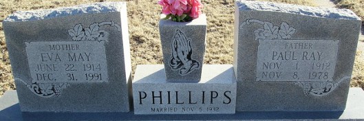 PHILLIPS,Paul Ray "Father" 1 Nov 1912 8 Nov 1978 Eva May PHILLIPS