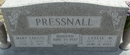 PRESNALL,Leslie M. 19 Oct 1915 4 Jun 2003 Mary L. PRESNALL