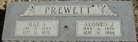 PREWETT,Alonozo J. 4 May 1890 11 Sep 1966 Mae S. PREWETT