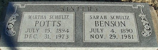 POTTS,Martha Schultz 15 Jul 1894 31 Dec 1973 (on stone w/ Sarah Schultz BENSON)
