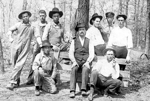 Made in Platter, Bryan Co. Tom Fisher is the only man in the picture without a hat, as well as the only man I can actually identify.