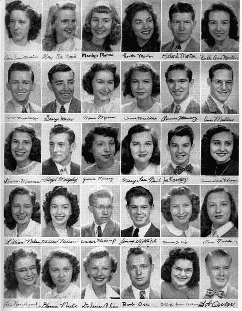 Row 4: Lillian Nelson, Mildred Nelson, Walter Niesamp?, Jimmy Nightingale, Norma Jo Nix, Ann Noble