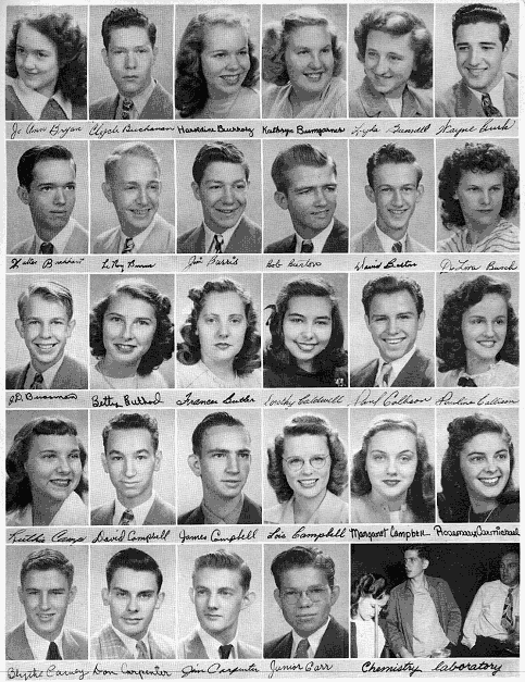 Row 1: Jo Ann BRYAN, Clyde BUCHANAN, Haroldine BUCKHOLZ, Kathryn BUMGARNER, Lyda BUNRELL?, Wayne BURK