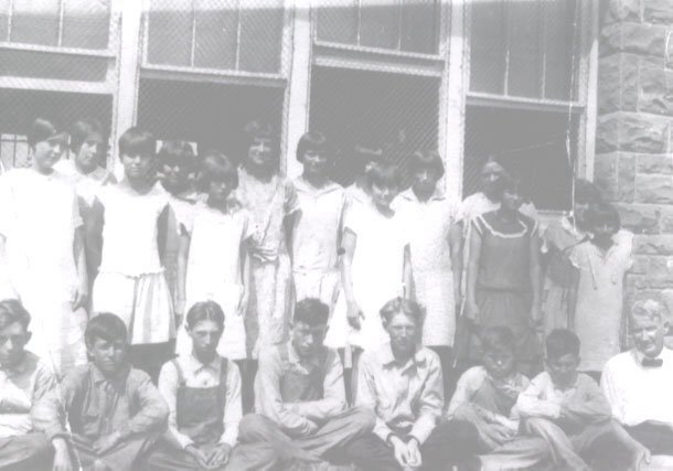This class picture was taken about 1925 at Big Prairie School. My uncle Harvey Ellis,was in time for the picture this time. He is third from the left in the first row. My mother Doza Ellis Wells is in the last row, third from the right. All the rest are unknown.