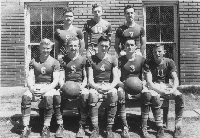 The basketball team photo has two names on the back: Dick Link and Joe Hayes.