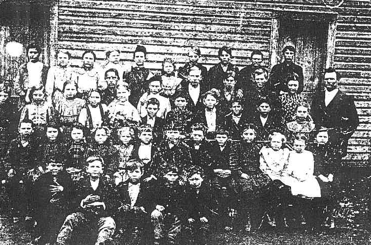 Name # 1 Back row from the left- the 8th child is my dad, Tensley Eli COX, Sr. (appears to have hand on boy in front of him) Name # 2 Second row from the left-5th child is my uncle Archie Presley COX (just in between two girls) Name # 3 Third row from the left-4th child is my aunt Effie Ida Belle COX (HENSON)