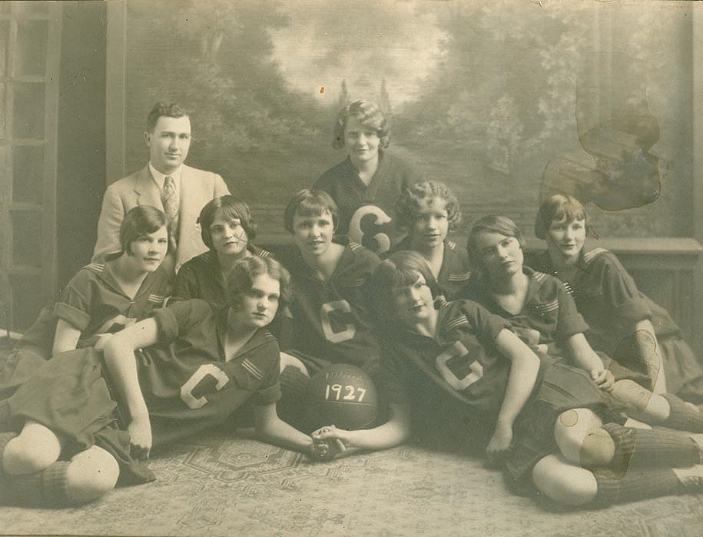 Birckett, forward; Fay Long, side center; Byrdena Walker, guard.
