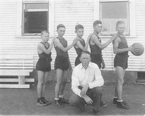 Left to right - Junior Brannum, Garrett, John Biege, Murphy, Billy D. Harrell.  Coach: Clint Morrison