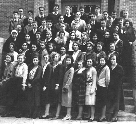 Sophomores, & Juniors 1ST ROW: Tom Byrne, Terry O’Brien, Dennis Casey, Joe Renniers, George Winters, Jimmy Thomas, Bill Moran 2ND ROW: Phil Kates, Jack Murray, (?), Charles Bryce, Charles Barbour & Tom Casey, John Goss, Albert Eremewitz, Tommy Clote & Tom Lahmeyer 3RD ROW: Joe Griebel, Jim McFarland, Ted Daugherty, Francis Murray, Dick Burke, Charles Daugherty, Pete Hartman, Paul Buthod, Charles Kent, Rosemary Hilditsh & Agnes Stevens 4TH ROW: Geraldine Blair, Mariana Brown, Anna Reniers & Mary Eileen Riley, Agnes Egan, Salley Griebel, Appollonia Schictle, Mildred Helbing, Otillia Sharp, Peggy Pendergast 5TH ROW: Joan Boudreau, Pauline Ryan, Carolyn Webb, Betty Jane Cowan, Betty Barclay, Rita Quinn, Jane Davis, Jane Brennan, Mary Frances Rodwig, Lyona Hardesty 6TH ROW: Pauline Wlaker, Mary Catherine Scott, Ruth Smarinsky, Mary McFarland, Claire Dolan, Louise Cunningham, Bernice Higgs, Consuelo Garcia, (?), Lucile Ryan