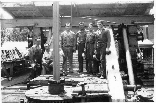 My father, Fred Downs, was the fourth man from the right. He was the derrickman and was standing next to the drill pipe. I don't know the names of the other men, but I thought that someone might recognize them. My daddy told that they drilled wells all over OKC in those days.