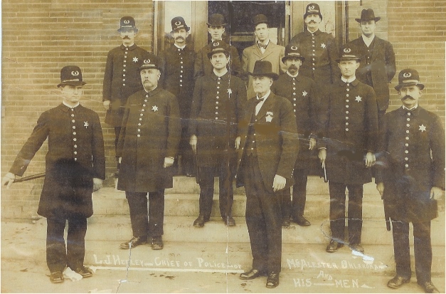 Below are pictures from the Oklahoma State Penitentiary, McAlester. My grandfather, George Washington Read is third from the left in white shirt. He was born in 1896 in Graybill, TX., Collins Co. The picture is taken somewhere around 1920. My father, Earl Read, was born in Brookin, 1917 and he lived in the guard house as a young boy. My Great-grandfather, James Quinton Porter Read also worked at the prison as night sergeant. That is when the painting was done by prisoner #1770. He also worked in McAlester as a policeman and in Leigh.