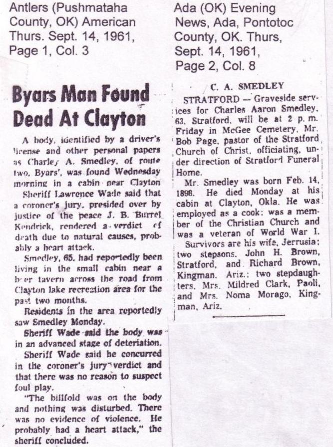 Since1996 | |County Index| OKSpecial|YourTidbits| OutOfState |Clippings|OKDeaths| | |
