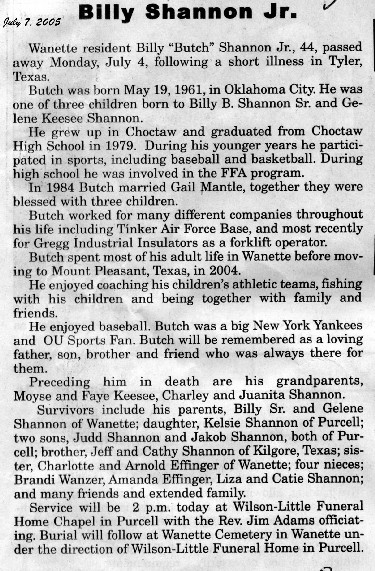 Billy "Butch" Shannon Jr., 44, passed away Monday, July