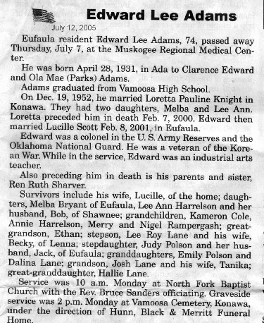 Since1996 | |County Index| OKSpecial|YourTidbits| OutOfState |Clippings|OKDeaths| | |
