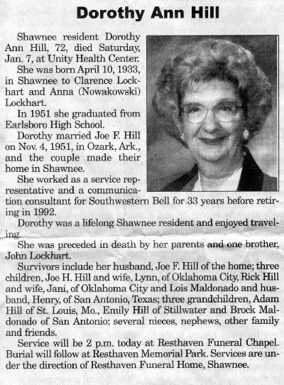 Ella Mae Hill, 77, McLoud, died Friday at a local hospital.