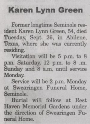 Green, Karen Lynn view copy of obit