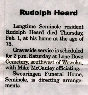 Glen Pence officiating. Burial will follow at Little Cemetery north of Seminole.