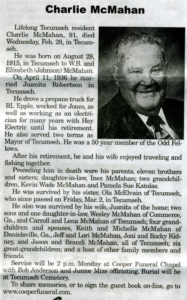 She and her husband made their home in Shawnee. In 1979, they moved to Tecumseh.