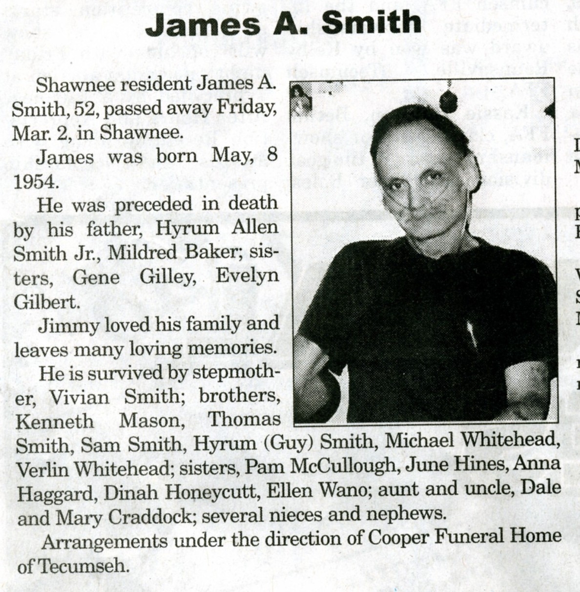 Shawnee resident Dennis Earl Gibson, 55, died Friday, March 9, in Shawnee.
