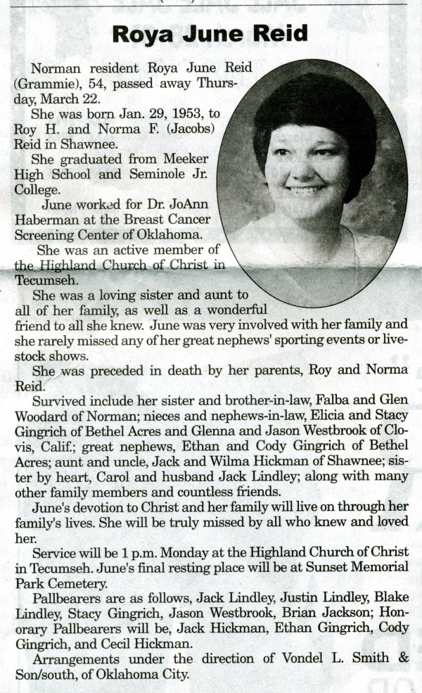 Minco, Okla.; two sisters, Elaine Ellis of Shawnee and Marge Wilson of Oklahoma