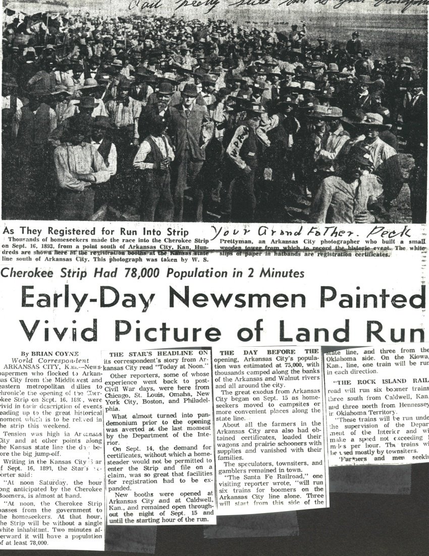 Wilson Page Peck, made the land run into Oklahoma in Sep of 1893. He