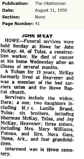 You found this information at //okgenweb.net /~okleflor/obits2013/mckay_john.htm |