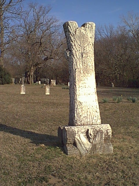 These two tall monuments are the Paul brothers buried in Green Hill Cemetery in Davis. These stones are about 15' tall. Circa 1905. This tall fork is found in the Hickory cemetery. It stands about 7' tall. Sometime around 1910-1920 the style of the W.O.W. stones changed to the more conventional style of the period made of granite.