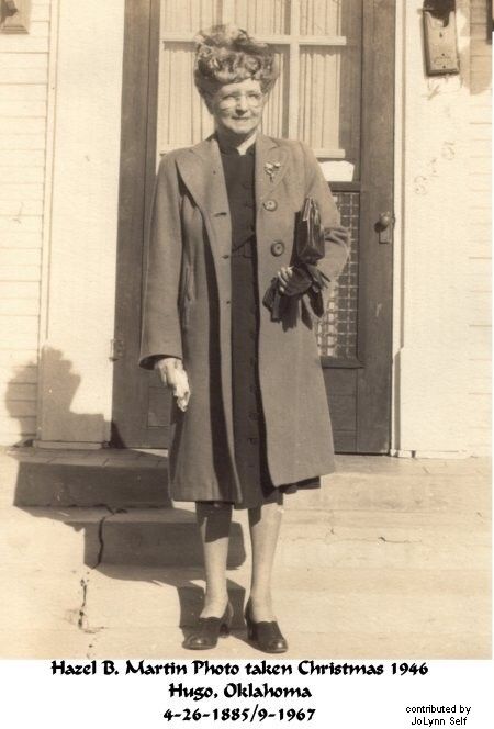 Hazel Bonner was born Apr 25,1885 in Allen, Scotsville Co, Kentucky. She was barely 6 years old when her father Dr. R.S. Bonner, her mother, Nancy Caroline Chandler Bonner, and her sisters, Suzanne and Clara, and brother, Coleman, traveled to Indian Territory in the 1890's via wagon train. As I was growing up she would regale me with her adventurous stories of Indians and hardship along the trail before the family settled in Old Doaksville (later Ft Towsen). Her father was one of the first doctors in the tri-county area.
