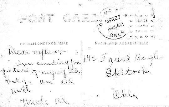 Front and back post card Al Beagles 1911 Owner :Dewayne Beagles