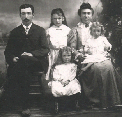 This photo was handed down through the G W Nelson family but the connection is unknown. On the back it says: Mr. & Mrs. John Longnecker and girls, Taloga, Oklahoma. The Nelson family was in the area 1901.