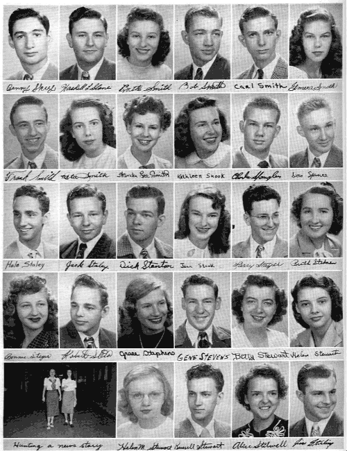 Row 4: Bonnie Stegar? Robert Stet(l?)a Grace Stephens Gene Stevens Betty Stewart Helen Stewart
