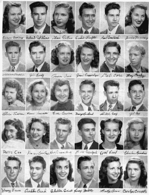 Row 5: Jimmy Crews, Carleton Crick, Clella Crist, Tommy Crockett, Betty Cross, Carolyn Crouch