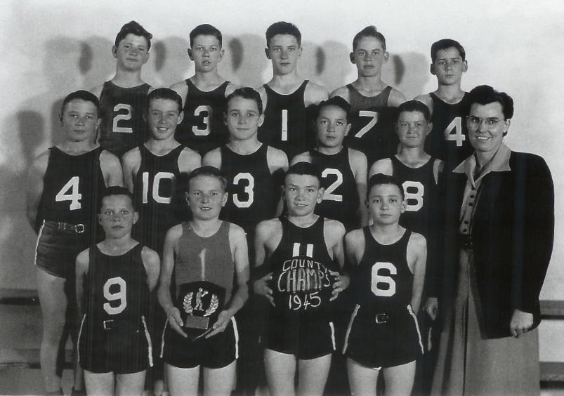 #9 Roy Wilson; #12 Richard Curry, and the coach, Miss K. Burnett