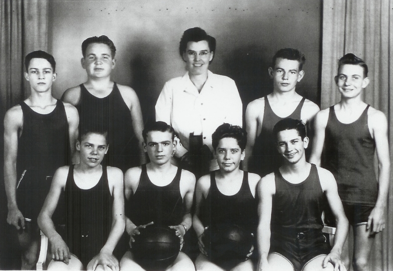 #1 (Front row) Jackie Hover and the coach, Miss K. Burnett