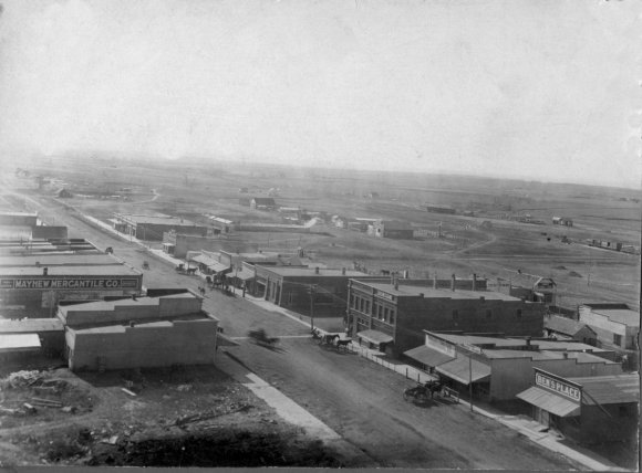 This is a picture of Butler, Oklahoma believed to be taken by Margaret Emily (Emma) Hays who was married to Charles Harvey Huff. She was born on the eleventh of November, 1858 in Illinois. She died March 30, 1920 in Moorewood , OK. In about 1900 they were living in Wise Co. Texas and she operated a professional photography shop. By 1905 they were living in Moorewood or Butler, OK. Don't know the date but it looks like it was before automobiles were around.