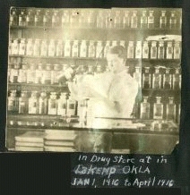 In Drug Store in Lakemp, Okla, 1916. (Andrew Frank Halsey's first job, working for his uncle, Dr. Smith.)