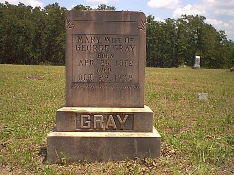 GRAY, Mary McCarty (O. L. 's sister) Wife of George Gray Born April 26, 1872 Died Oct 29, 1932