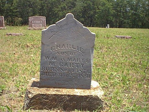 MCCARTY, Charlie , Son of W. M. and Mary E. McCarty Born Sept 4, 1876 - Died Mar 27, 1891