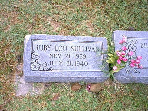 | Ruby Lou Sullivan | 11-21-1929 | 7-31-1940 | See tombstone picture by Billy |